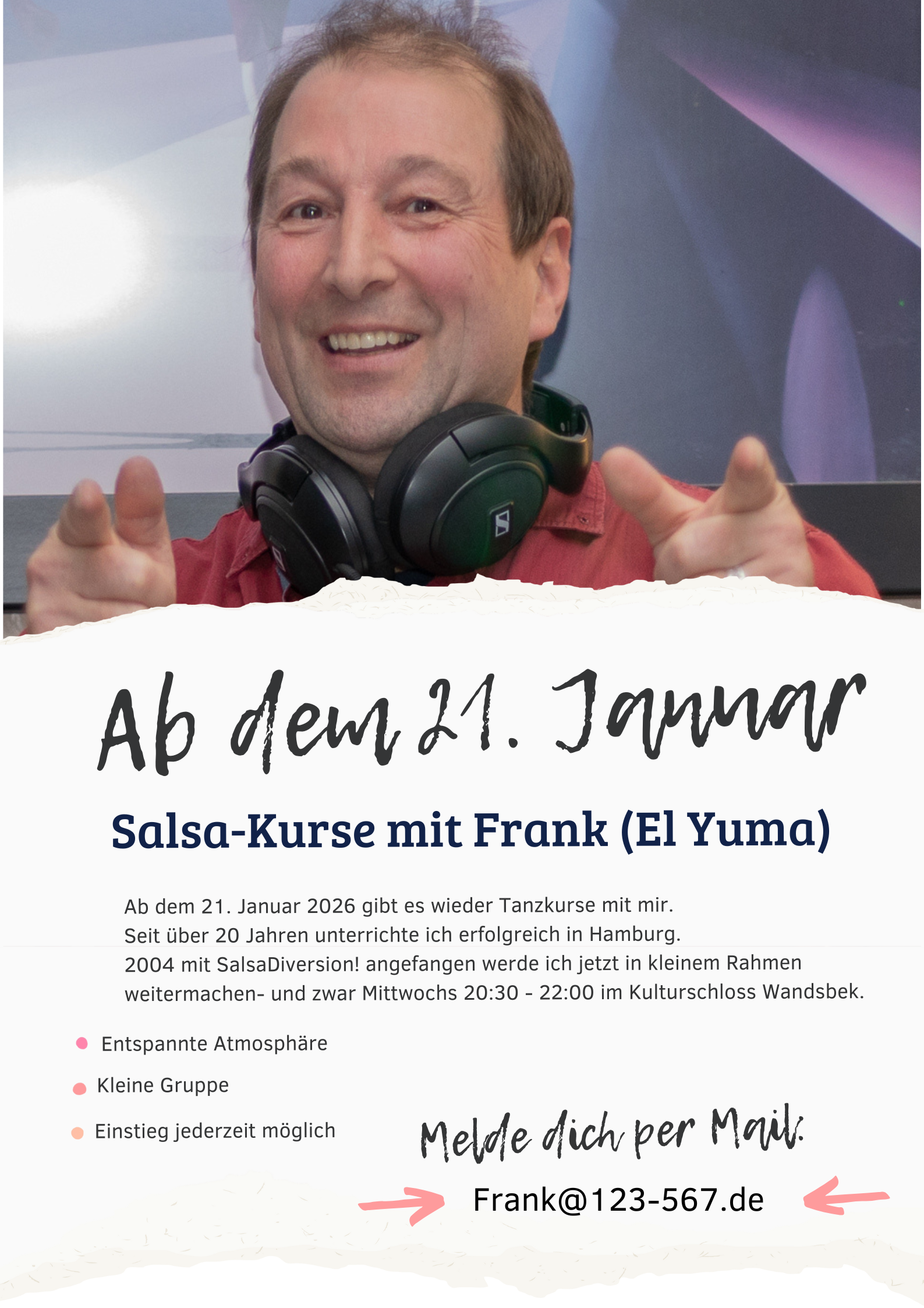 Mit dieser Devise habe ich SalsaDiversion! zur zweitgrößten Salsa-Tanzschule Hamburgs geführt. Mittlerweile unterrichte ich in verschiedenen Locations. Es macht einfach immer wieder Spaß, die Philosophie, die mein Leben so stark beeinflusst, weiter zu geben.